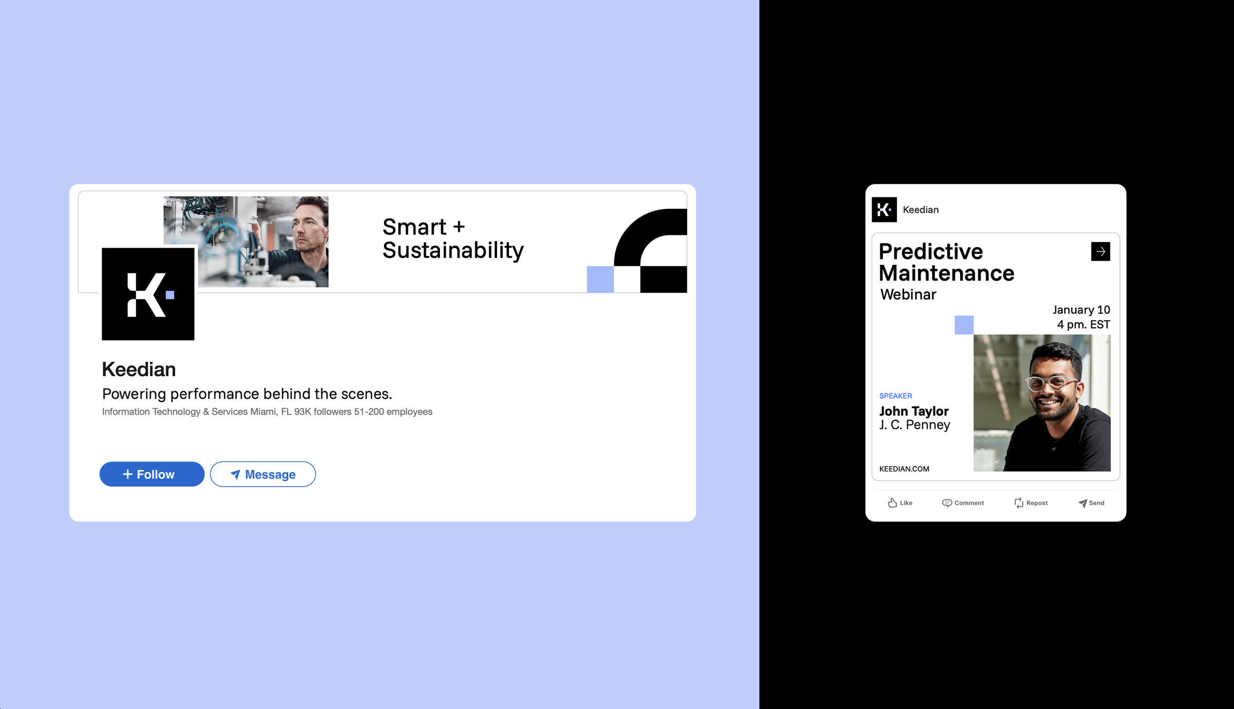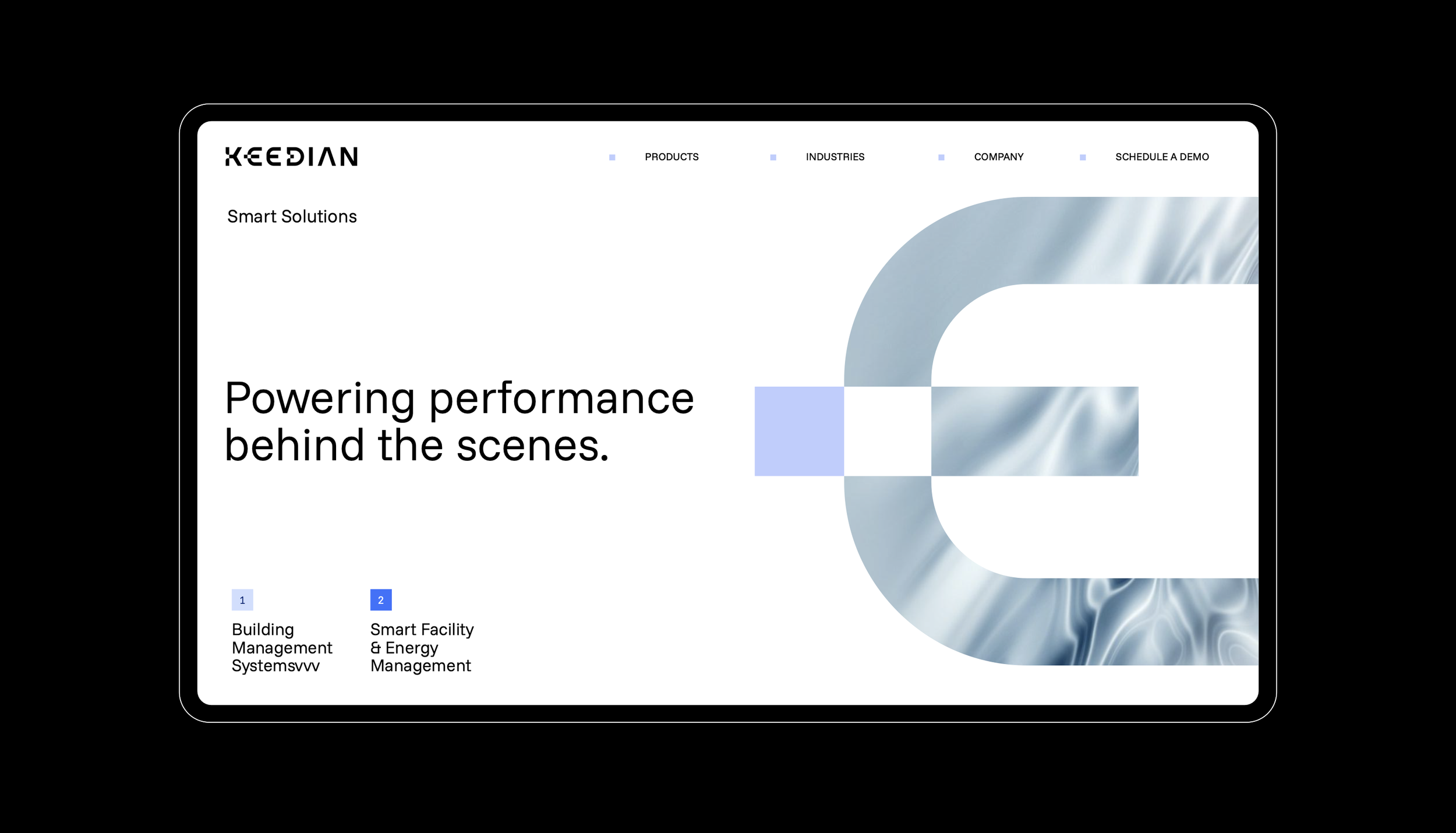 Estos espacios negativos y las incisiones geométricas evocan circuitos, patrones de datos o la estructura de un dashboard, representando cómo Keedian trabaja: recolectando y analizando datos ocultosen la operación (lo invisible) para luego presentarlos en formas claras y procesables (lo visible).